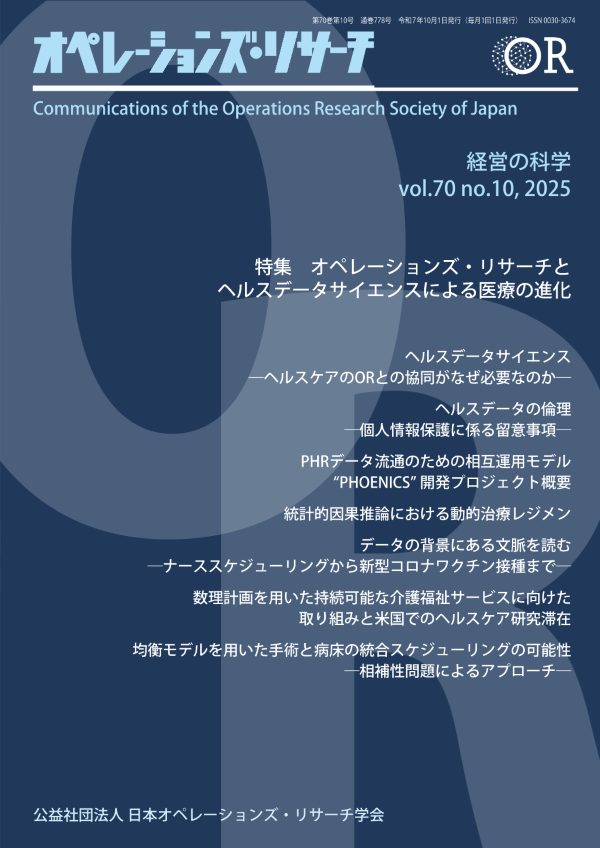 数理計画を用いた持続可能な介護福祉サービスに向けた取り組みと米国でのヘルスケア研究滞在 | 軽部 幸起,伊藤 真理,山田 哲男 | 特集記事 | 530 | |